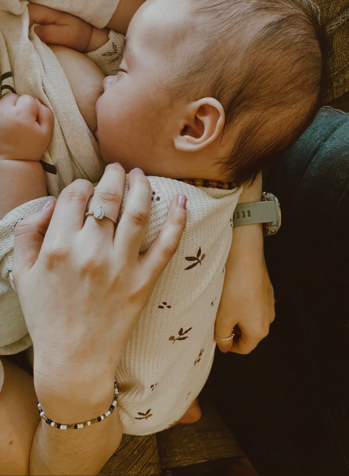 Our most popular ring! This ring represents the liquid gold drops of your most memorable journey. The band consists of cubic zirconia stones, and the center piece is where your preserved milk stone will be set on.