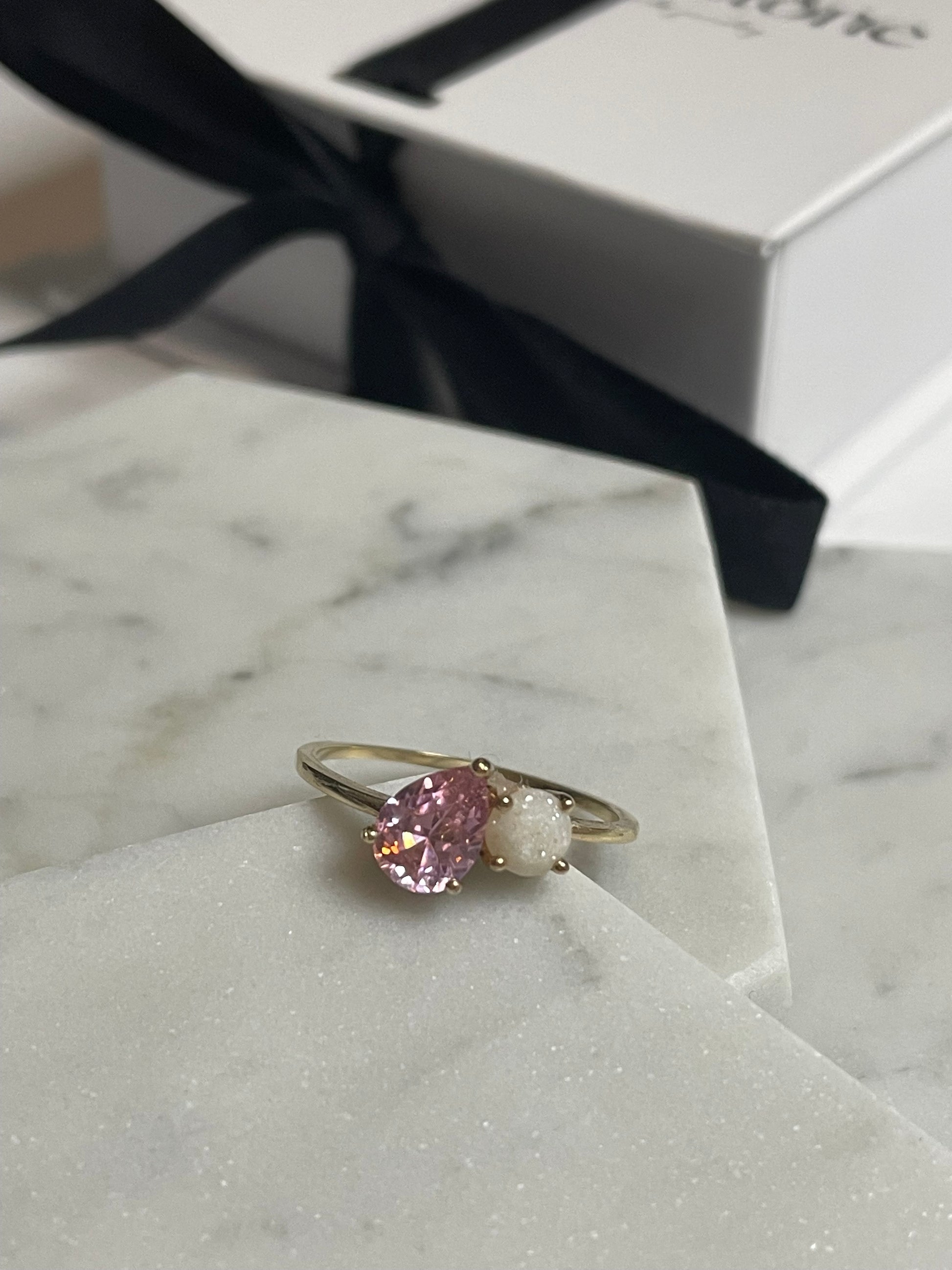 This special Pear Abstract Ring is designed with a pear-cut birthstone and a round-cut milk stone to commemorate your breastfeeding journey. Each milk stone is unique and handmade, making it an ideal way to honor your special bond with your baby.